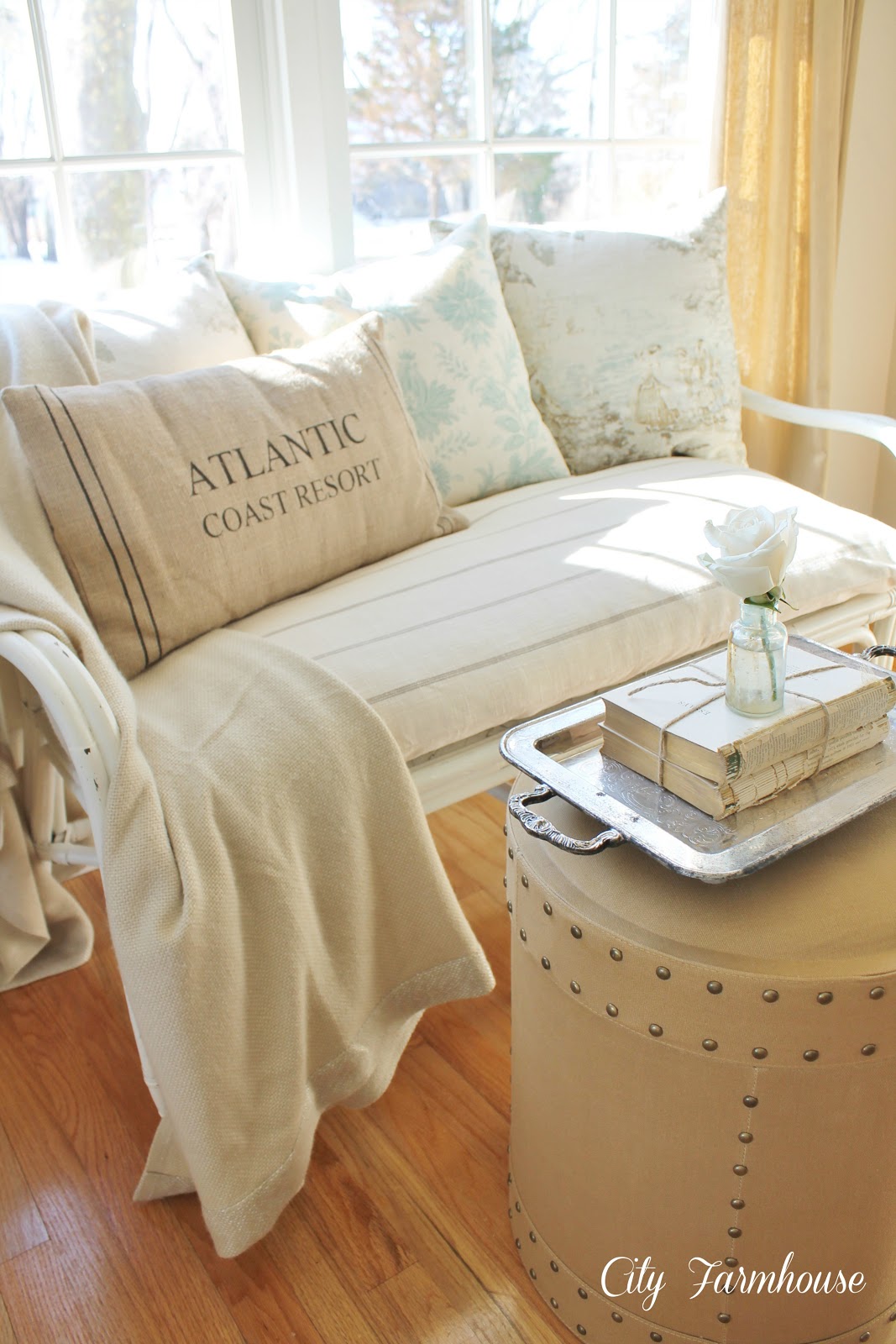 I love the light, bright, airiness of this little corner you created! I can see why you love to sit there with your coffee in hand and daydream for a while. 🙂 Beautifully done!