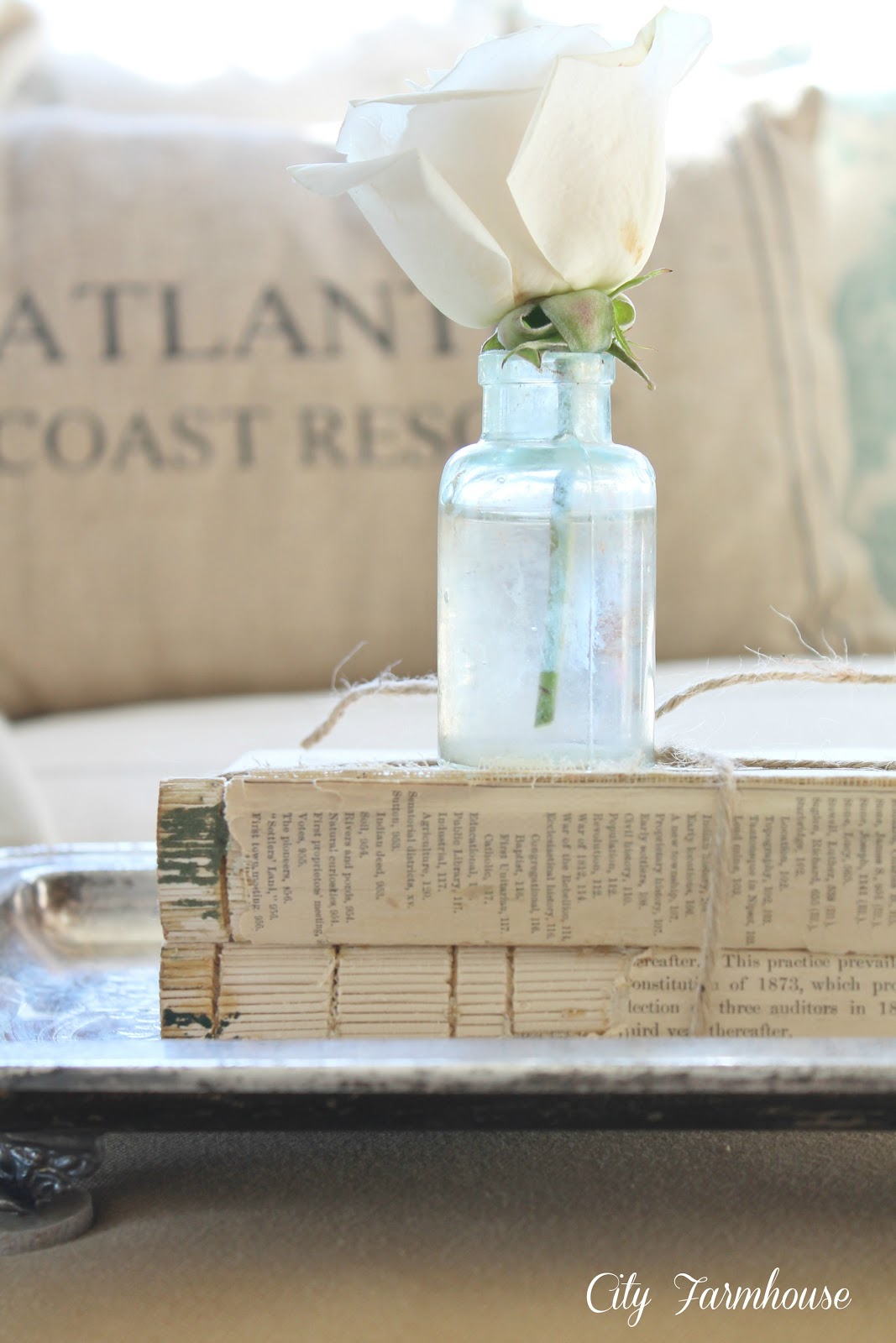 Great transformation!! The pillows, little rose and shabby books, what a great spot, love it all 🙂